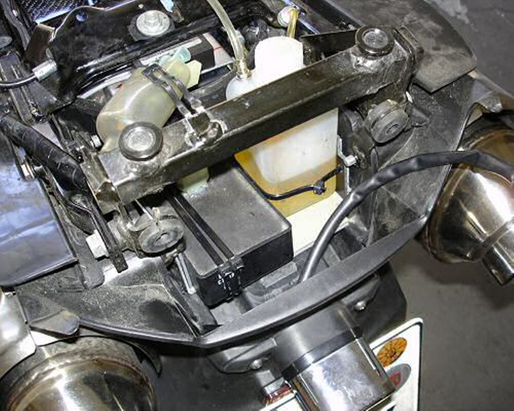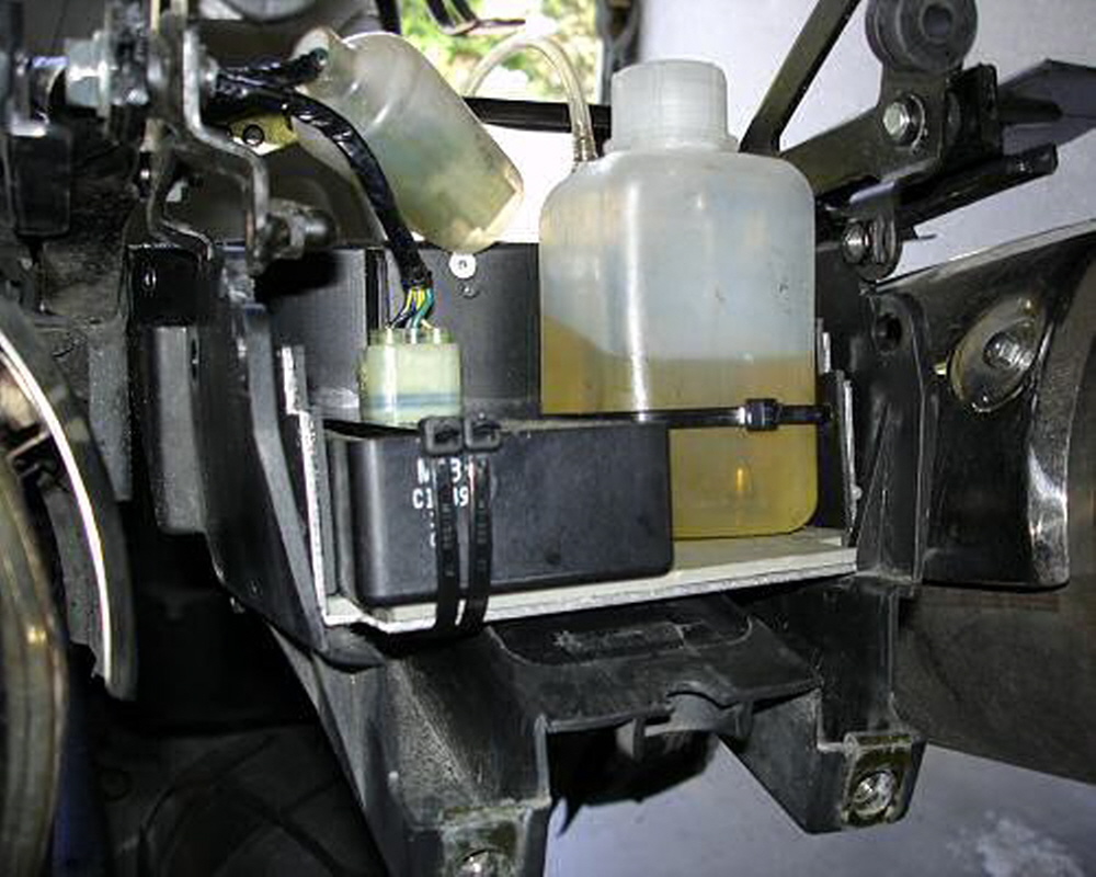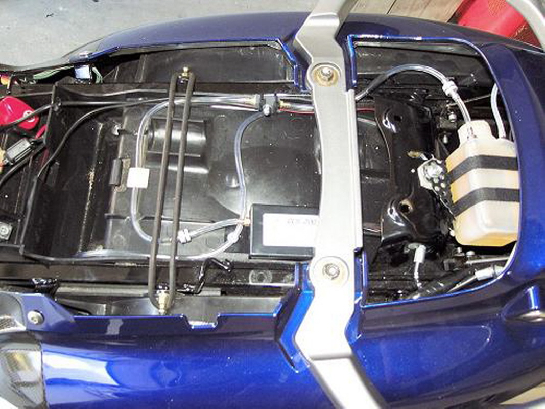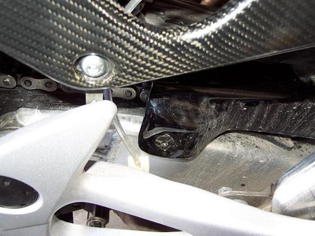 Die Ölleitung geht durch das Werkzeugfach nach aussen.