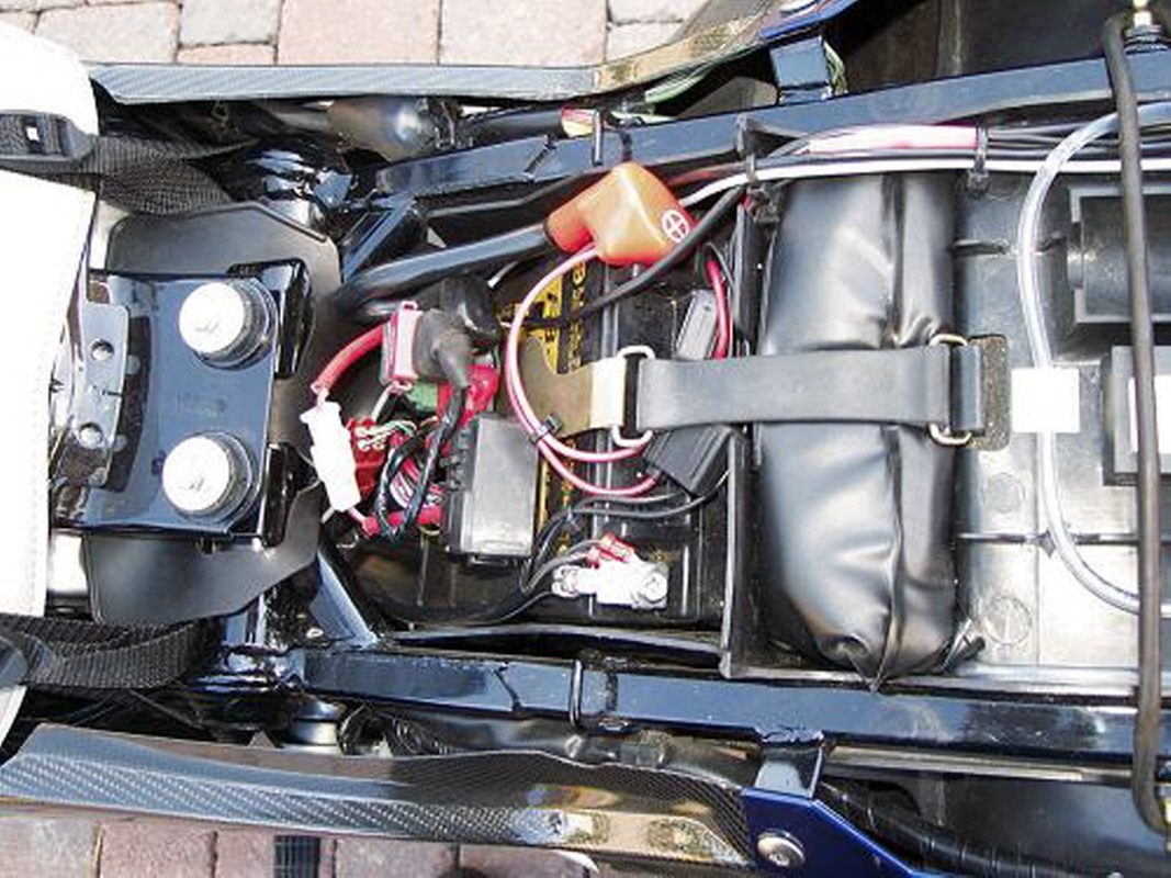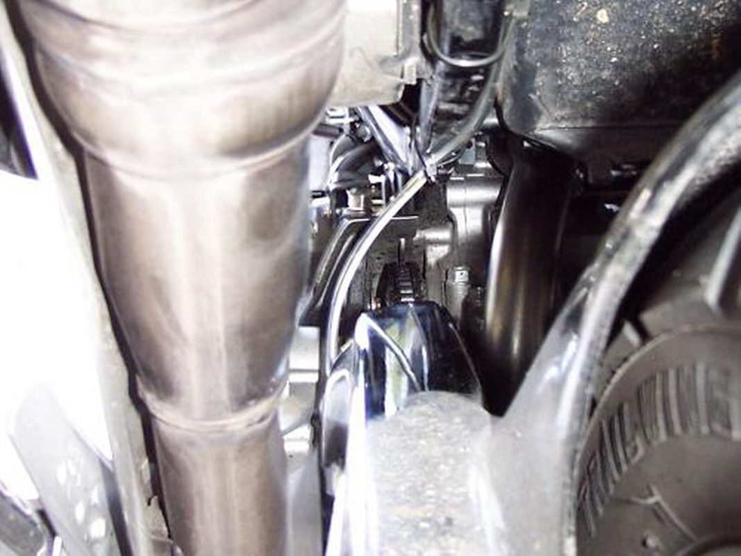 Nach vorne weg gehen die Kabel zur Batterie und unter dem Tank zum Lenker.