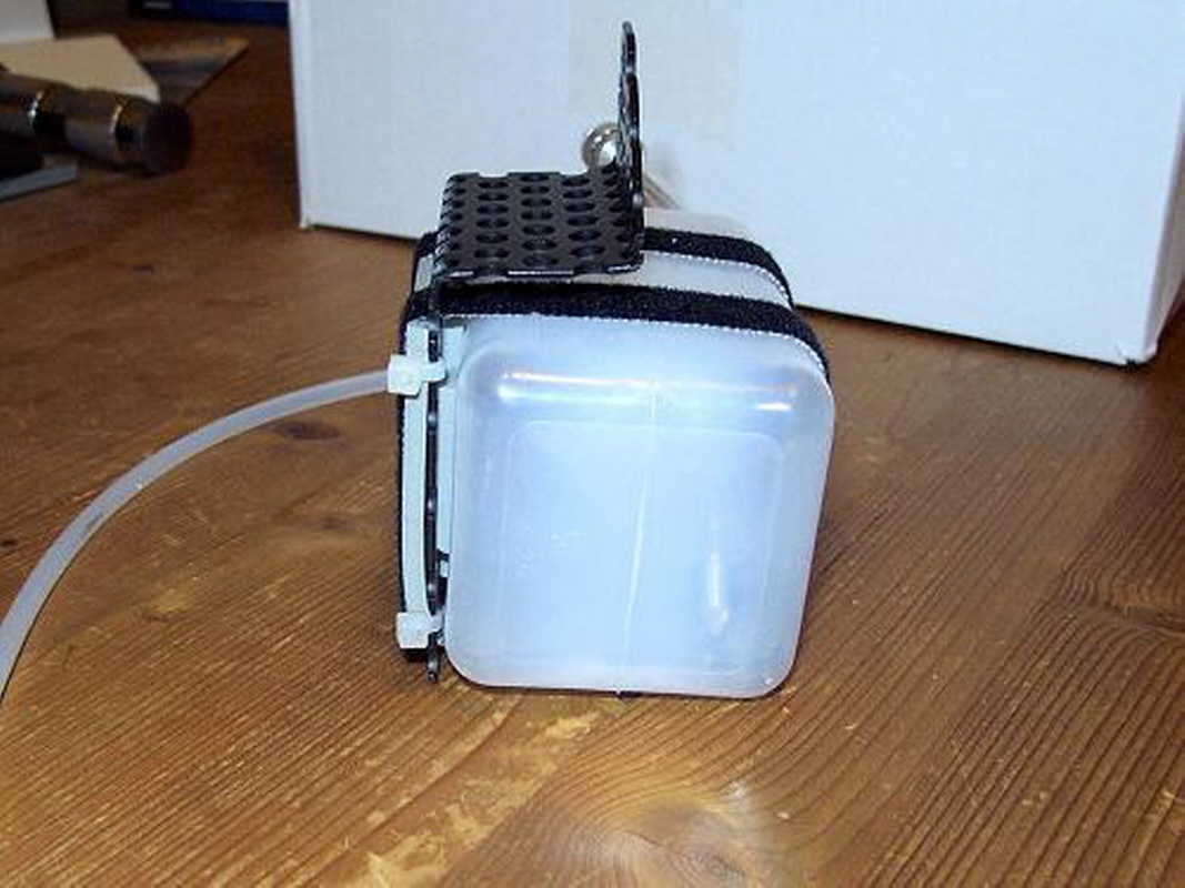 Erste Befestigung des 250ml Tanks auf einem Winkelblech...