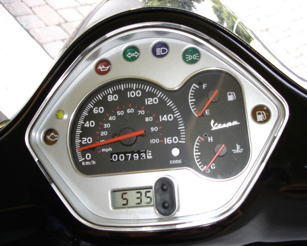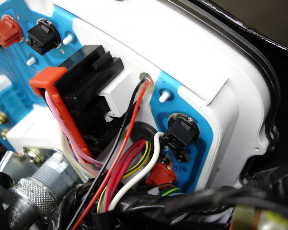 Die fehlende Kontroll-LED zum Warnblinker, links im Cockpit. In der Schaltung ist ein Anschluß dafür vorgesehen