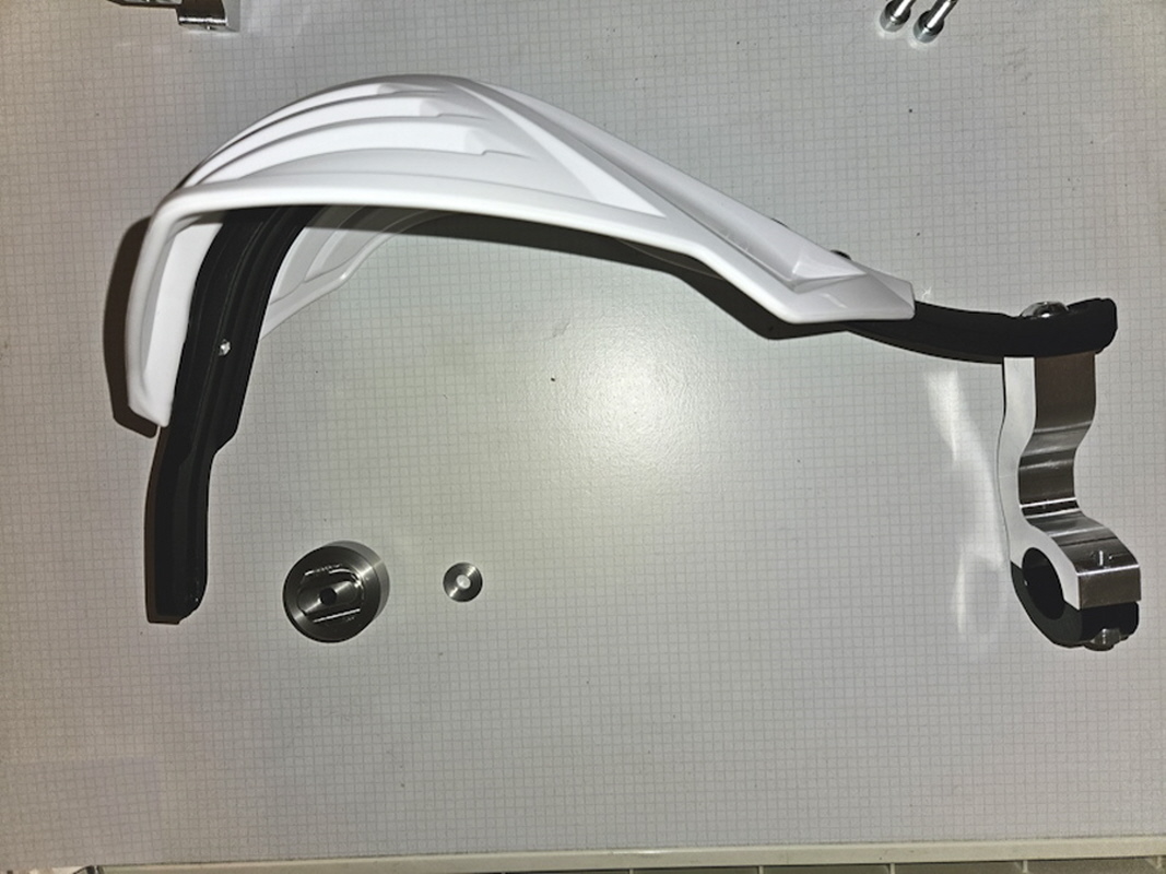 Dazu gehört ein Lenkergewicht passend zum Acerbis, sowiw eine 90° VA-U-Scheibe.