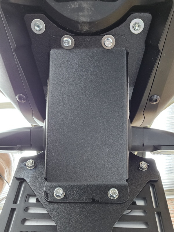 Von Iron Optics und für Haleys gedacht. Der Alu Kennzeichenrahmen muss nur um 180° gedreht werden.